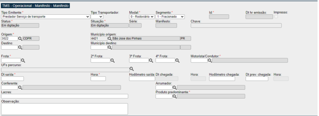 Após o MDF-e estar salvo, ele irá aparecer com o status em verde que representa que está em digitação.