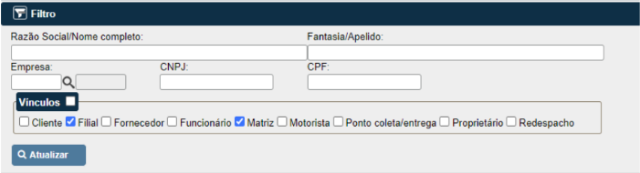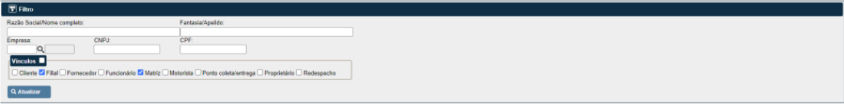 No Filtro selecione o vínculo Matriz e filial e clique em atualizar: