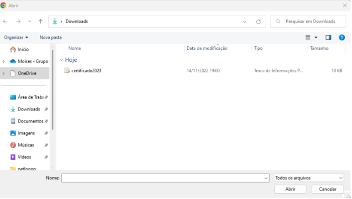 Selecione o cadastro desejado, e navegue até a opção certificado digital: